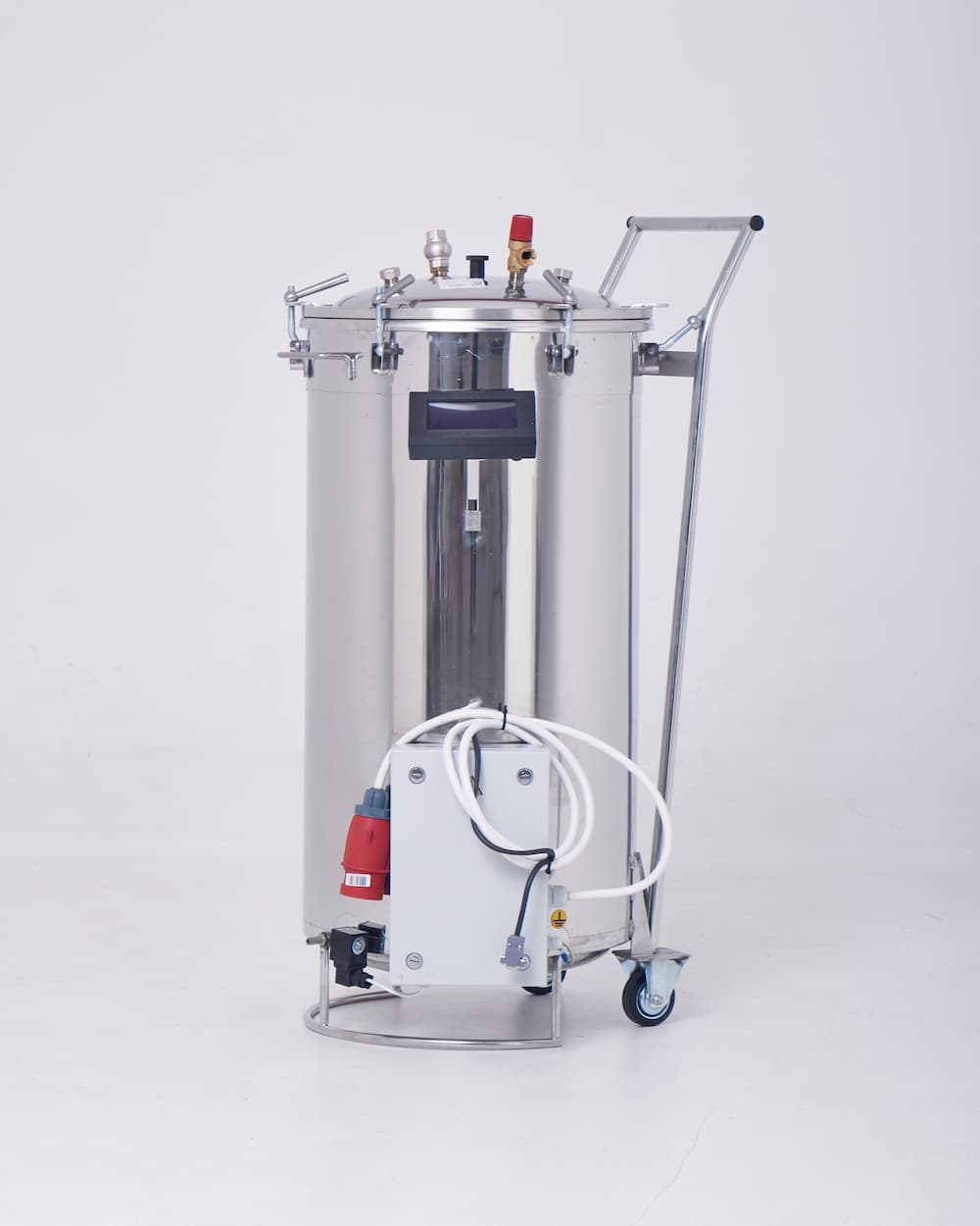 Вместе с автоклавом, вы получаете устройство для быстрого охлаждения автоклава, которое позволяет ещё быстрее охладить воду внутри автоклава. Это особенно удобно, если вы готовите в реторт пакетах. Новую партию можно будет загрузить ещё быстрее.