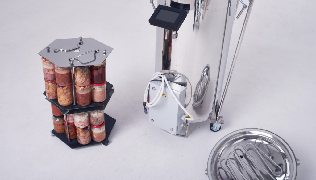 Изготовлен из нержавеющей стали, удобен и безопасен. Можно загрузить наполненную тару, установить программу для мяса, птицы, рыбы, ягод или плодов и заниматься другими делами. Он не занимает плиту, его можно установить на любой ровной поверхности. ЭБУ контролирует давление, температуру, поэтому аварийные ситуации исключены. Аппарат сам сливает воду после завершения цикла, чтобы можно было легко достать содержимое и не переваривать консервы.