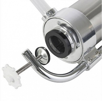 • Толкатель с диском в силиконовой опрессовке. Такой силиконовый диск поршня позволяет эффективно использовать устройство и ускорить процесс набивки колбас, исключая обратное выдавливание фарша.