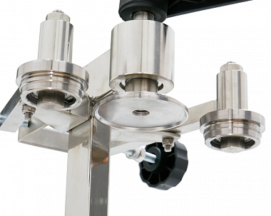 4. Закаточная машинка крепится к столешнице струбцинным механизмом. Все механизмы изготовлены на высокоточном токарном оборудовании, прошедшем калибровки и плановую сертификацию.