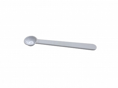 Изготовлена из белого пищевого пластика, имеет длинную ручку для удобной работы при дозировании различных добавок, материал допускает химическую стерилизацию веществами, разрешенными для применения на пищевых производствах.