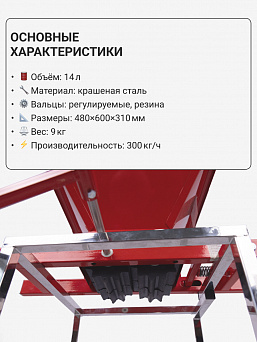 • С помощью регулировки удобно меняется степень прижатия вальцов, что отражается на качестве размятия винограда.