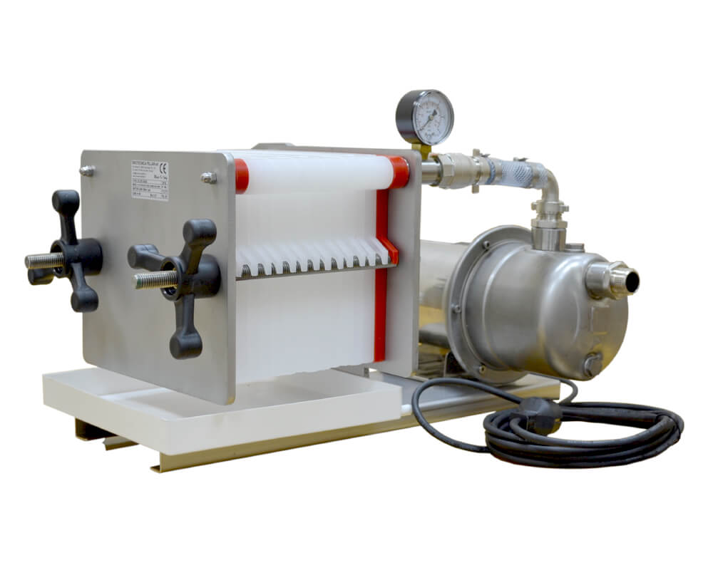 Пластинчатый фильтр с 8 пищевыми полипропиленовыми пластинами практичный и безопасный, гарантирует качество и безопасность фильтрации продукта на высоком уровне. С помощью фильтровального картона можно настроить степень очистки жидкости (грубая очистка, осветляющая очистка, стерилизующая очистка).