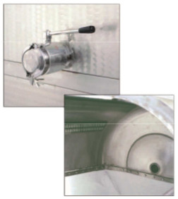 Загрузка сырья может проходить через одну или несколько дверей или через осевую нагрузку. Резервуары для пресса полностью закрыты, что ограничивает окисление продукта и гарантирует очень высокое качество сусла. Поток должен проходить через внутренние стоки и через перфорированную загрузочную дверь.