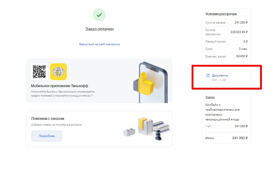 По завершению оформления необходимо скачать Документы, предоставляемые банком.