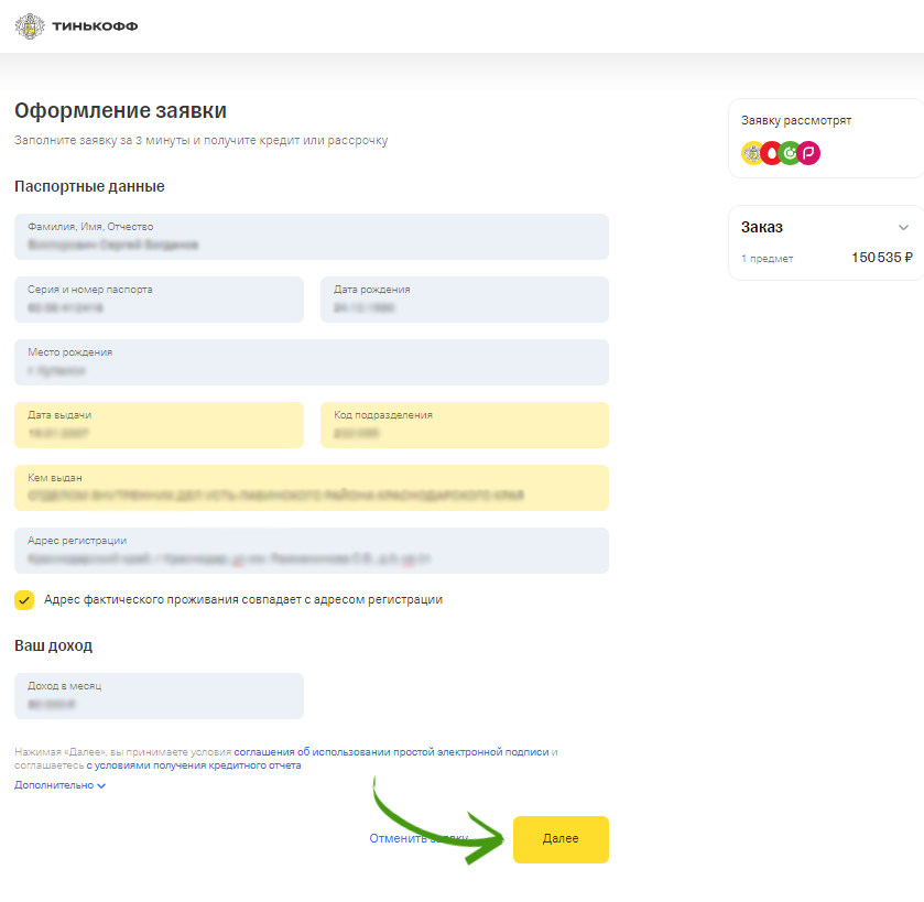 Далее вы перейдете на страницу, где необходимо заполнить паспортные данные и отправить заявку на рассмотрение.