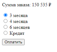 Перейдите на страницу оформления услуги и выберите вид услуги: рассрочка на 3, 4 или 6 месяцев, либо Кредит.